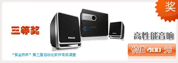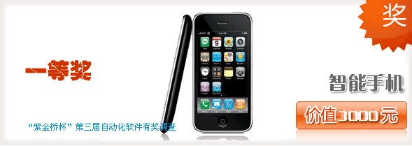 在總結(jié)第一屆和第二屆自動(dòng)化軟件有獎(jiǎng)?wù){(diào)查后推出“紫金橋杯”第三屆(2009)自動(dòng)化軟件有獎(jiǎng)?wù){(diào)查,并將為用戶提供更加豐厚的禮品,調(diào)查獎(jiǎng)品包括筆記本電腦、智能手機(jī)、M-ZUNE、高性能音響、數(shù)碼相框等豐厚禮品,同時(shí)還將發(fā)放超過100份的紫金橋大禮包。我們期待您積極的參與!