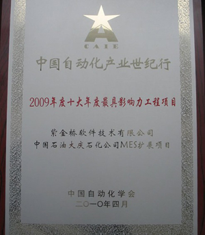 作為本次活動的重要內容,年度頒獎盛典于晚宴時陸續揭開,紫金橋軟件再次獲得殊榮,憑借中國石油大慶石化MES項目從而贏得盛典的壓軸大獎——2009年中國自動化最具有影響力的十大工程項目獎,同獲此獎項的企業還包括西門子(中國)公司、ABB(中國)公司、霍尼韋爾等企業,作為唯一一個本土的軟件企業,紫金橋再次與國際品牌站在同一起跑線上。