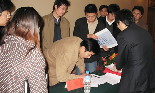 會前火熱的簽到現場  紫金橋6.0濟南站會議  會中加座后火爆的場面