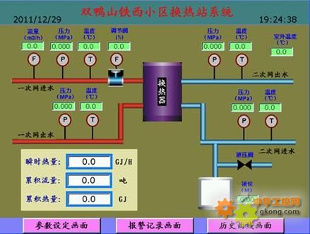 該東北小區換熱站以就地控制為核心,將現場的溫度、壓力、熱量、流量、液位、閥門開度、泵的起停狀態等信號傳輸到控制器,由其進行采集和控制,再通過以太網通訊的方式,與上位機保持實時連接。