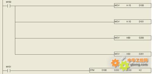 氣候補償曲線功能:在熱網行業中,如能讓控制溫度根據室外溫度進行相應的改變,將有利于供熱量的調節,從而實現節能。臺達公司根據熱網行業而專門開發的氣候補償曲線DTM指令滿足了上述需求。編程者在設置完室外溫度與控制溫度數組(最多50組)后,DTM指令會根據室外實際溫度值自動調整控制溫度值。