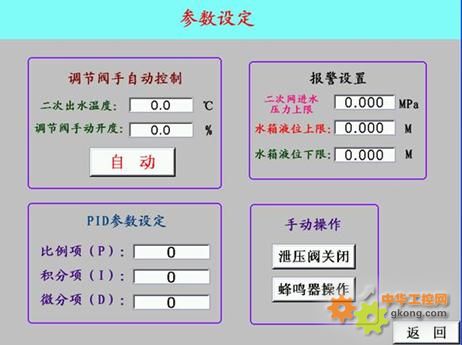 B07S515觸摸屏與PLC通過臺達Q-LINK協議相連,通訊速率比常規通訊快百分之三十。通過配置觸摸屏數據,可以改變PID設定值及參數,監控調節閥、循環泵和補水泵變頻器運行工況,顯示現場溫度、壓力、流量、液位等信號,內設報警極限值及報警記錄畫面,同時可將當前和歷史數據以報表或曲線的方式在屏上顯示出來,方便調節和控制整個工作過程。