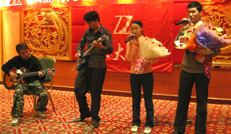 “我來自偶然,象一顆塵土。天地雖寬,這條路卻難走。我看遍這人間坎坷辛苦,讓蒼天知道,我不認(rèn)輸,感恩的心,感謝有你,感謝命運………”。同往年一樣,佛山工本自動化2004年年終總結(jié)表彰暨聯(lián)歡晚宴,于2005年2月1日在《感恩的心》中拉開帷幕!辛苦了一年的員工們又能夠團(tuán)坐在一起享受這溫馨、祥和的時刻了! 佛山市工本自動化公司的所有工本公司的員工出席晚宴,還邀請到與我們公司合作的伙伴—國際產(chǎn)電LG產(chǎn)電董事長金正萬先生的領(lǐng)導(dǎo)等嘉賓也出席,大家歡聚佛山、共慶新春。本次聯(lián)歡晚宴司儀由公司人力資源羅曉霞主管與公司財務(wù)倪雪峰經(jīng)理主持。 彭總代表工本公司作了致酒詞。他首先代表公司的領(lǐng)導(dǎo),對一年來為公司辛勤工作的員工表示衷心的感謝和誠摯的問候!對國際產(chǎn)電LG公司所提供的支持和幫助表示衷心的感謝,并期望以后繼續(xù)精誠合作,共創(chuàng)美好未來。 彭總指出:工本公司自成立以來取得了發(fā)展中求穩(wěn)健的喜人成績,有賴于各部門主管以及戰(zhàn)斗在各條戰(zhàn)線上的一線員工支持和信賴。去年,在國家宏觀調(diào)控中,公司進(jìn)行了戰(zhàn)略方向的適當(dāng)調(diào)整,優(yōu)勝劣汰,積極進(jìn)取;在印度洋海嘯發(fā)生之后,工本人奉獻(xiàn)了自己的一份愛心;加強(qiáng)了分公司、辦事處二級單位的管理,商場股份制改造,進(jìn)一步體現(xiàn)了工本人"一花獨放不是春,萬紫千紅春滿園"企業(yè)精神,繼續(xù)加大公司專業(yè)化市場的開拓和管理水平的提高,繼續(xù)積極參與各項公益事業(yè),并得到社會各界的大力支持和信賴,更進(jìn)一步提高了企業(yè)的知名度和美譽度,都將為公司保持穩(wěn)健高速發(fā)展打下了良好的基礎(chǔ)。同時,提出了在新的一年,繼續(xù)發(fā)揚工本人批評與自我批評的優(yōu)良傳統(tǒng),在群眾中樹立榜樣的力量;以創(chuàng)新的精神來發(fā)展我們各自的子公司,往更專業(yè)化方向發(fā)展。要不斷學(xué)習(xí),學(xué)以致用,堅決杜絕"小富即安"的思想,努力拼搏,再創(chuàng)高峰,這樣的企業(yè)才具有真正的生命力。 LG產(chǎn)電董事長金正萬先生也給我們帶了心語,衷心希望工本公司在新的一年里,繼續(xù)友好合作,為實現(xiàn)新的經(jīng)營目標(biāo)共同努力! 最后,彭總作了新年賀詞,并向在座所有人祝酒。 晚宴和穿插其中的晚會節(jié)目開始了!精神文明與物質(zhì)文明,吃、喝、玩、樂永遠(yuǎn)是連體的!在享受著美食的同時,也享受臺上的歌舞表演,碰到好運氣的,手上還抱著抽到的獎品。同樣,特等獎也是與去年一樣,由彭總贊助的諾基亞手機(jī)一臺,全場員工翹首以待。容易得到的不一定是好東西,但是,好東西肯定來之不易。經(jīng)過一場集智慧與運氣以及部門團(tuán)結(jié)力量的一場游戲中分出二等獎、一等獎和特等獎。財務(wù)部是本年活動中最好運氣的部門,同時,也是本晚晚宴最好運氣的部門,因此,最后的特等獎也是落在財務(wù)部,該部門除獲得最大獎項外,連同整個部門都取得了紀(jì)念獎。 “讓蒼天知道,我不認(rèn)輸!感恩的心,感謝有你………”一個個精彩的節(jié)目,一段段爽朗的歌聲,一個個難忘的鏡頭留在我們的記憶中。