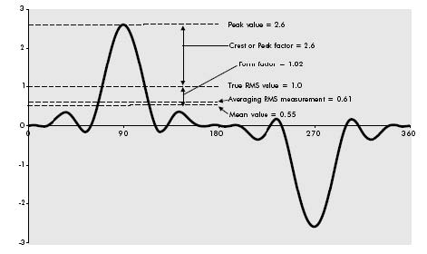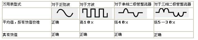 值得注意的是盡管兩種儀表在測量失真波形的時候讀數不同,而它們在測量純正弦波時卻讀數一致。這個狀態就是兩種測量儀的校準狀態,因而兩個測量儀都可以看作為已經校準過了—僅限用于正弦波。