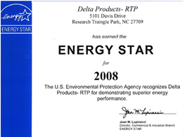2008年11月,臺達電子集團美國分公司位于北加洲三角研究園區(Research Triangle Park, NC)的業務及研發辦公大樓(DPC)榮獲美國環境保護局(Environmental Protection Agency)所頒發的“2008節能之星大獎”(Energy Star 2008 award)!獲得到此獎項證明了DPC的這棟辦公大樓正式濟身全美“最有效節能辦公大樓”的行列。