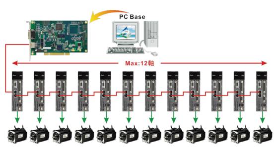 同步通訊架構(gòu):一張卡可在1ms內(nèi)同步處理12軸伺服電機(jī)