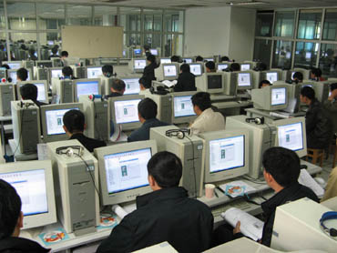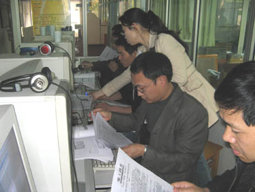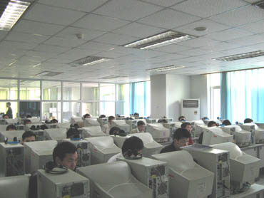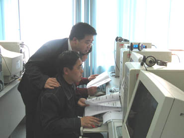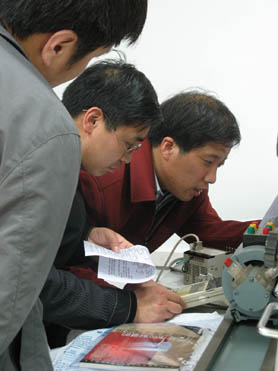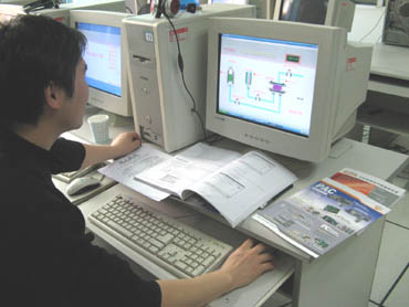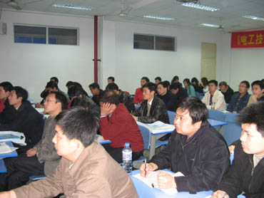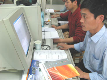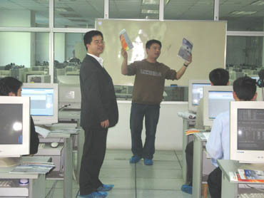 學員們每人一臺電腦,參看教材在王建軍工程師的細致指導下認真地學習。 |