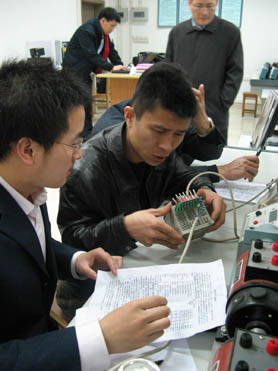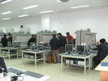 學員們在重慶大學實驗室實際操作PLC設備 |