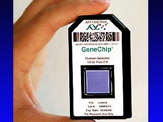 Affymetrix公司就是出于此種考慮生產出了這樣的儀器。這種計算機芯片上包含著完整的人類基因組。目前此芯片已經開始出售,售價約在300至500美元之間。