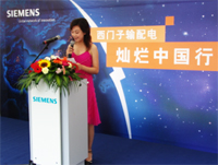 2005 年 6 月 1 日,西門子輸配電集團(tuán)啟動(dòng)了中國巡展活動(dòng)。 “ 燦爛中國行 ” 巡展將由廣州開始,先后造訪中國 14 個(gè)城市,于 2005 年 8 月 26 日在北京落下帷幕。巡展為期 3 個(gè)月,總計(jì)行程約 15000 公里。西門子輸配電集團(tuán)將向中國電力行業(yè)的客戶及合作伙伴展示其全系列創(chuàng)新科技以及針對中國市場的解決方案。此舉彰顯了西門子輸配電植根中國,幫助中國發(fā)展電力行業(yè),為保障中國經(jīng)濟(jì)發(fā)展與社會(huì)繁榮做貢獻(xiàn)的長期承諾。