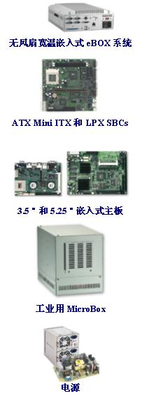 依據(jù)不同需求,生產(chǎn)不同尺寸的嵌入式主板, 3.5"、5.25"、Mini ITX、 LPX 或是 PC/104模塊, 還有 STX 模塊和底板。艾訊科技尚依嵌入式主板規(guī)格,設(shè)計(jì)系列嵌入式工業(yè)用機(jī)箱MicroBox及含主板在內(nèi)的無(wú)風(fēng)扇系統(tǒng)eBOX。艾訊科技的嵌入式產(chǎn)品一定備有合乎您計(jì)畫使用的工具,在制造、銷售、測(cè)試、測(cè)量、自動(dòng)化辦公室、交通運(yùn)輸、零售業(yè)、醫(yī)療健康、銀行業(yè)、娛樂業(yè)、消耗性儀器以及網(wǎng)路通訊市場(chǎng)等等行業(yè)中,已建立起廣大且多樣化的嵌入式產(chǎn)品線。