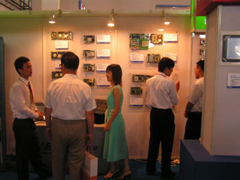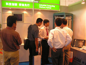 參加過今年六月上海IAC展會的觀眾一定對研揚(yáng)科技工業(yè)系統(tǒng)產(chǎn)品線(ISD)的新產(chǎn)品所展現(xiàn)的卓越性能還記憶猶新。此次展會上,我們同樣讓北方觀眾也領(lǐng)略了它們的風(fēng)采。走近研揚(yáng)的展位,清新綠色的風(fēng)格讓人如沐春風(fēng)。直接映入眼簾的是板卡區(qū),陳列著全長/半長CPU卡、防火墻、嵌入式單板等最新產(chǎn)品。支持Intel® Pentium® 4/ 賽揚(yáng)D CPU的防火墻家族的新成員FWB-880也在其中。板卡區(qū)下方的展示臺上擺放著幾款正在熱賣的機(jī)箱和平板電腦。其中,黑色的6 槽工業(yè)壁掛式機(jī)箱是AEC-206,小巧的結(jié)構(gòu)和靈活的安裝設(shè)計都使它成為嚴(yán)苛的工業(yè)環(huán)境下的最佳選擇。展臺旁邊巍然聳立的機(jī)柜上,工作站、機(jī)箱、防火墻等精品一應(yīng)俱全,讓人目不暇接。位于展位左側(cè)墻壁的顯示器上,正在播放著研揚(yáng)最新的產(chǎn)品介紹宣傳片,驅(qū)動它的就是展會的焦點(diǎn)BOXERS系列的新產(chǎn)品——AEC-6910。作為世界上第一臺Pentium-M 2.0GHz嵌入式控制系統(tǒng),AEC-6910憑借其靈活的擴(kuò)展功能、緊湊的結(jié)構(gòu)、無風(fēng)扇設(shè)計及高效的熱傳導(dǎo)裝置,可完全勝任于工業(yè)自動化、工廠控制、測試儀表和安全監(jiān)測等惡劣的技術(shù)應(yīng)用環(huán)境。