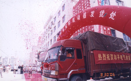 | 10點30分,林培根副市長一聲發貨令下,陳宣安鎮長、袁建偉處長在眾多媒體的閃光燈下揭開紅布,滿載著7臺HPMV-DN型高壓固態軟起動器的大貨車徐徐駛出。在隨后舉行的記者招待會上,和平電氣有限公司董事長陳道賢先生對各位嘉賓的到來表示熱烈的歡迎。陳道賢董事長表示:和平公司能取得今天的成績,離不開各級領導的關懷和支持,離不開行業協會及兄弟單位的鼎力幫助,更離不開全體員工的共同努力。今后,和平電氣會倍加努力,堅持走科技帶動發展的道路。 |