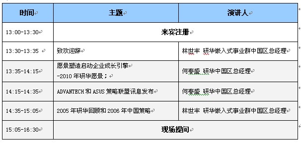 為了感謝各位媒體同仁對研華的關注和支持,研華科技特擬定于2005年11月15日舉辦“研華人·沖鋒愿景—2005年研華科技媒體說明會”。我們誠摯地邀請您屆時能出席此次活動,您將會主要了解到: