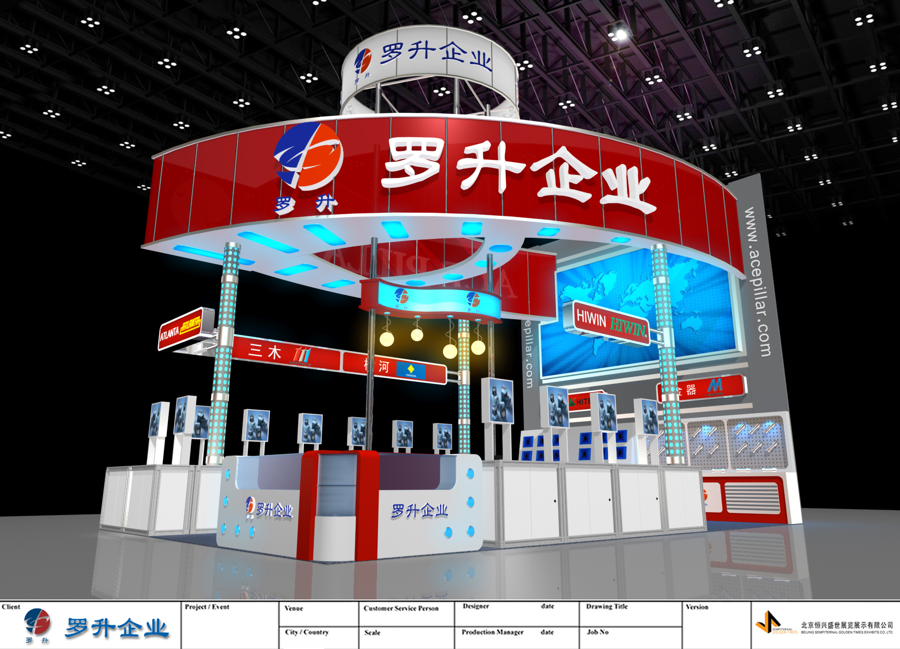 羅升的展臺主體顏色將繼續突出紅色,因為羅升公司是一個朝氣蓬勃,活力四射的創新型公司,在紅色中也仍然有穩重、踏實、成熟的蘭色。這些顏色體現了羅升公司的面貌和本質。