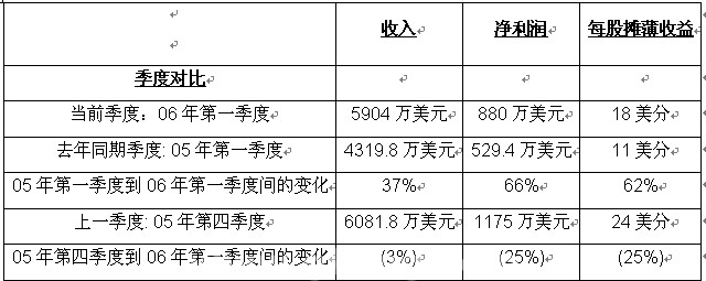 · 2006年第一季度投資和其它收入為 156.6萬美元,2005年第一季度和第四季度分別為147萬美元和153.1萬美元。這種投資和其它收入的增加來源于更高的收益。