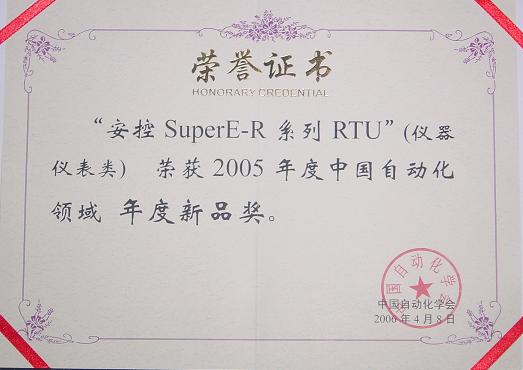 安控科技參加了由中國自動化學會主辦的中國自動化產業世紀行的評選活動,經專家評審組評定,安控公司新推出的SuperE-R系列RTU新品榮獲2005年度中國自動化領域年度新品獎。