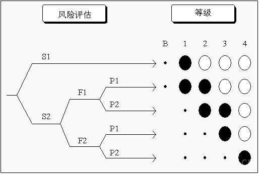 為了采取合理有效的安全保護(hù)措施,以達(dá)到CE認(rèn)證的標(biāo)準(zhǔn),首先必須對機(jī)器設(shè)備的危險性進(jìn)行分析和評估。按照歐洲機(jī)器安全標(biāo)準(zhǔn)EN954-1標(biāo)準(zhǔn),對機(jī)器設(shè)備進(jìn)行“危險性評估”后可以得出其危險等級。危險等級可分為B,1,2,3,4共5級,等級B最低,等級4最高。機(jī)器設(shè)備的危險等級數(shù)是根據(jù)事故發(fā)生時人身受傷程度、事故發(fā)生幾率和事故的可預(yù)防性來劃分的,如下圖所示:
