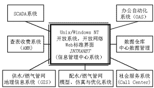 (4) 企業社會服務系統(含管網GIS和網絡自動抄表AMR收費功能,AMR—Automatic Meter Reading)。