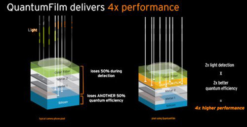 根據InVisage公司提供的資料來看,傳統的感光元器件一般只能捕獲到25%的光線,而采用QuantumFilm技術設計的傳感器則可以捕捉到90%到95%的光線,即使在極度的弱光條件下也能拍攝出更高水準的照片。該公司相信QuantumFilm有能力成為新一代的影像平臺。對于QuantumFilm而言,第一個目標市場將是手機市場,那里對小型而高性能的圖像傳感器的需求量是最大的。