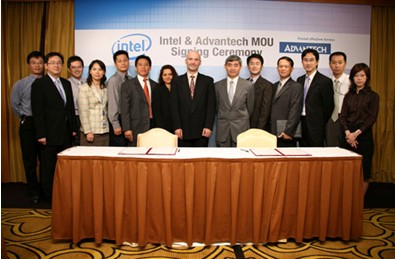 10月3日,研華今日與英特爾攜手開創嵌入式應用技術方案及產品和市場開發,簽署了合作備忘錄 (Memorandum of Understanding, MoU),共同合作開發研華嵌入式ePlatform方案。此等方案將建基于Intel® Architecture (英特爾架構,簡稱IA) 嵌入式技術及平臺開放式架構,并特別嵌入至最新的Intel® Core™ 2 Duo處理器。研華技術長陳贊鴻領導,包括英特爾架構處理器事業部 (IPD) 全球總經理、亞太區總監在內的高層領導親臨現場,在慶祝簽訂備忘錄的儀式中共同致詞,承諾將推動在數字安全監控系統 (Digital Security Surveillance, DSS)、工廠自動化、醫療自動化、零售通路終端機及游戲解決方案等關鍵領域中緊密合作。