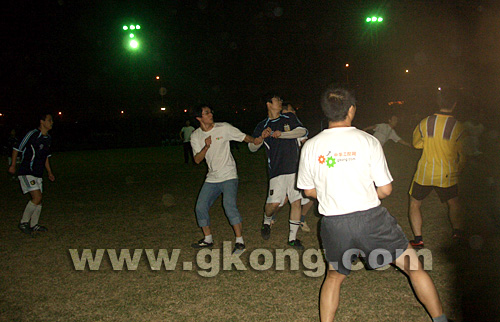 7點10分雙方球員進場,深圳的隆冬,雖不怎么酷冷,但脫下長衫長袖隊員還是感到絲絲的涼意,但這并不能阻擋隊員與觀眾們的熱情。隨著裁判的一聲哨響,激動人心的比賽正式開始,雙方隊員在場上左突右攻,積極拼搶、盤帶、進攻、退防…個個宛如職業(yè)球員。由于中華工控網(wǎng)隊員傳球配合屢屢失誤,后方險情不斷。但大家并不氣餒,仍然積極拼搶,體現(xiàn)了頑強的拼搏精神。寒風大,氣溫低,但場外觀眾的人數(shù)反而愈發(fā)多了起來,加油聲、叫好聲不絕于耳。此刻大家的熱情已經(jīng)溫暖了每一個球員,讓他們在場上更活躍、更興奮。