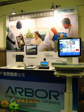 磐儀科技于ESI會場展出移動醫療助理、手持式醫療計算機及臨床信息系統(左至右)三款產品