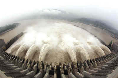 8月6日,長江上游5年來最大洪峰通過三峽大壩。中國三峽總公司披露, 三峽水庫大壩開啟8個深孔和1個排漂孔,進行大規模泄洪。大壩左右岸26臺70萬千瓦巨型機組全部同時并網發電。