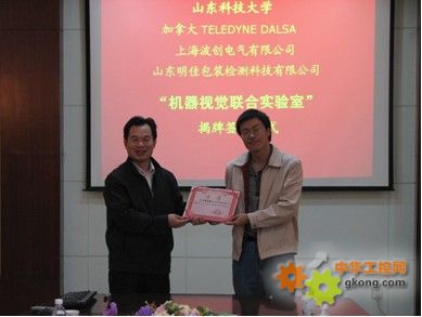 10月24日,“上海波創電氣有限公司—加拿大TELEDYNE DALSA公司—山東科技大學機器視覺聯合實驗室”揭牌儀式在山東科技大學順利舉辦。上海波創電氣有限公司(以下簡稱上海波創)董事經理張偉先生,加拿大TELEDYNE DALSA公司亞太區市場開發總監 Steve Zhu先生和信電學院院長曹茂永共同為機器視覺聯合實驗室揭牌。山東科技大信電學院副院長徐文尚主持揭牌儀式。