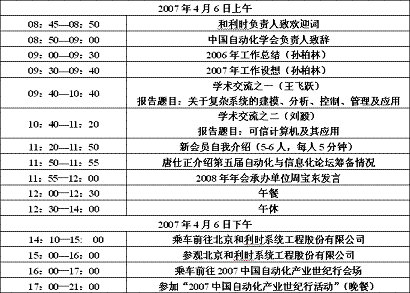 1. 會議時間:2007年4月 5 — 6 日;4月 5 日下午3點報到;