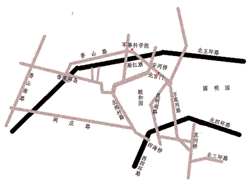 北五環至廂紅旗出口右轉到紅綠燈右轉200米即到;西五環至香泉環島出口經香山路過廂紅旗紅綠燈200米即到;四環路至四海橋、香山玉泉山出口到廂紅旗;三環路經萬泉河路、西苑、北宮門、安河橋往香山方向500米即到;公交車有634、737、331、113、特5路軍事科學院站。