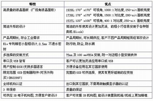 上海,6月 7日, 2007 – Elo TouchSystems新推出多功能后裝式嵌入觸摸顯示器,該系列觸摸顯示器導入六種觸摸技術,使客戶能夠根據(jù)使用環(huán)境選擇更適合的觸摸技術。同時機殼采用簡潔的外形, 完全不浪費空間, 并有多種選擇可以組裝, 隨機附上一對邊框小型安裝鐵件供客戶方便安裝. 17”及19”顯示器使用高質量的廣視角的液晶面板, 更適合高階市場應用的需求. 該系列的產品是符合無鉛要求(RoHs)產品,觸摸屏表面皆用防眩處理, 減低反光。
