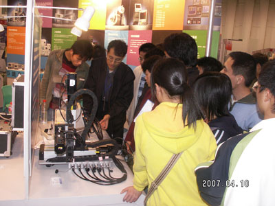 展會上,觀者如潮,參展產品種類繁多、琳瑯滿目。在耀眼的彩燈下,臺達集團在華子公司——中達電通的立體展臺和大型宣傳屏幕吸引了大批觀眾在展臺駐足。臺達調動光、聲、影,以及技術講解人員,向參觀者展示自己的形象、介紹公司的新產品與新技術。此次展會上,中達電通展出了多個系列的機電自動化產品,包括:臺達B系列伺服、適合高端市場的新款VE系列變頻器、編碼器,以及集合計時/計數/轉速器三機一體的新型計數器等。通過此次展會的完美展示,令更多的人記住了中達電通,帶回了對“臺達”品牌的美好印象和專業解決方案的新思維。