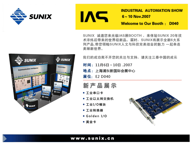 SUNIX將攜6大產品線亮相IAS展,敬請關注