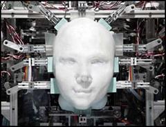 更讓人驚訝的是,研究人員能根據(jù)真人的面孔,讓W(xué)D-2的臉變得和任何人的外貌一模一樣!據(jù)悉,在WD-2的臉上,共有17個(gè)表情控制點(diǎn),而每個(gè)控制點(diǎn)都能使該處“皮膚”做出多達(dá)56個(gè)級別的自由變化,從而使WD-2的“臉”形成千變?nèi)f化的相貌和表情。而在WD-2的臉蛋背后,還有一部微型放映機(jī),從而將它所模擬的真人臉部特征如頭發(fā)、皮膚顏色等錄像播放在它的“臉”上,從而令變臉效果更加真實(shí)。