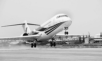 我國2009年自主研發的ARJ21新支線飛機從上海起飛。