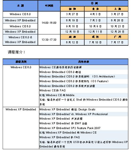 3月27日、4月3日,在深圳、上海和北京研華公司,微軟Windows CE 6.0的免費技術培訓開課了!