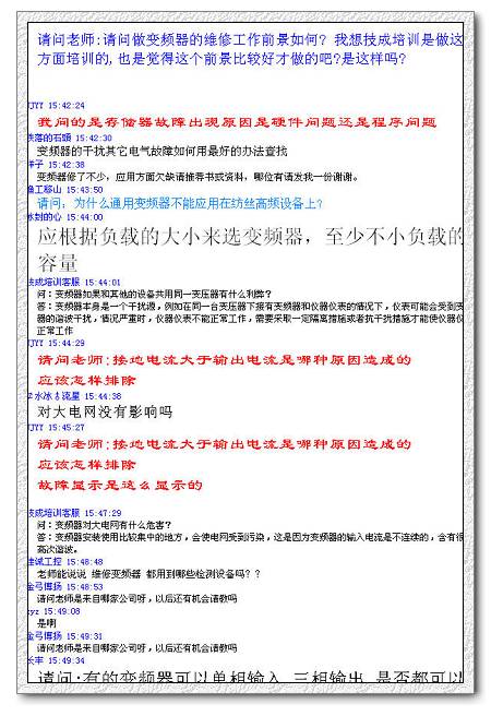 通過(guò)為期一周的準(zhǔn)備,2008年7月6日,中華工控網(wǎng)與技成培訓(xùn)聯(lián)合舉行了變頻器應(yīng)用與故障處理QQ群在線交流答疑活動(dòng),整個(gè)活動(dòng)持續(xù)將近兩小時(shí)。