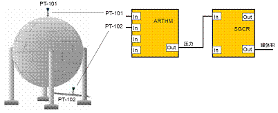 運用算術功能塊完成罐底和罐頂的差壓計算,再通過線性化功能塊以20點的采樣值來擬合出相應的差壓和體積的線性關系,并可以在罐底3051S的表頭上直接顯示罐的體積。