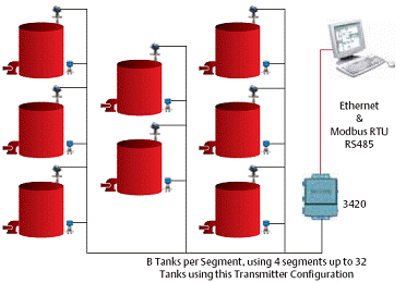 3420現場總線接口模塊也適合一些小規模FF應用,比如罐區監控系統等: