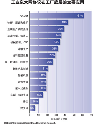 根據回復的統計來看,監控和數據采集系統(SCADA)顯然是以太網現場應用中