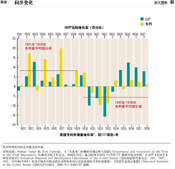 20世紀(jì)30年代,許多企業(yè)對創(chuàng)新存有疑慮。例如,我們可以考慮將專利申請量作為指標(biāo)之一來衡量投入創(chuàng)新的資源。在美國,設(shè)有研發(fā)機構(gòu)的企業(yè)在20世紀(jì)30年代的專利申請量增長率比此前十年低得多。從整體來看,企業(yè)高管在考慮科研方面的投資計劃時更傾向于采取觀望態(tài)度。