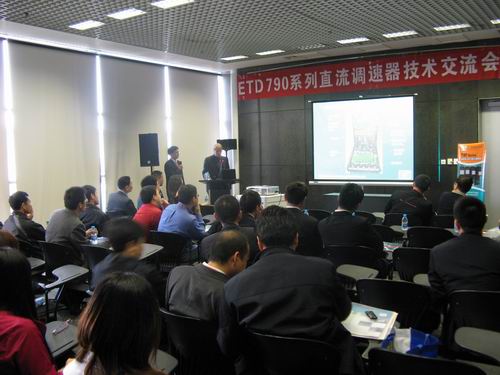 我們在本次展會期間(4月19日下午)在W4館M6會議室舉辦了“ETD790直流調(diào)速器技術(shù)交流會”。在這次會議上,我們對790系列直流調(diào)速器的主要功能特點、性能和應(yīng)用向與會嘉賓做了詳細(xì)的介紹,并和與會嘉賓一起針對產(chǎn)品的應(yīng)用層面進行互動,對嘉賓的問題逐一進行解答。會后,大家又一起參觀了ETD的展位,對790系列直流調(diào)速器在現(xiàn)場做了帶電機運行,更直觀地將產(chǎn)品呈現(xiàn)在客戶面前。本次會議在新老客戶的支持下取得了圓滿的成功。