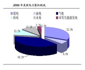 據統計,全世界電力供應主要來源還是煤炭,占40%,另外還有燃氣發電(20%)、水力發電(15%)、石油發電(7%),核電供應只占總量的16%,至于其他如太陽能、風能、潮汐能等可再生能源發電量還不到2%。美國的裝機構成(見圖2)看,煤電約占1/3,氣電占比略高于煤電,其次是核電和水電,約各占1/10;日本的情況是,油電、氣電、核電占比相當,各約20%,其次是煤電與水電;俄羅斯和印度也是以火電為主,德國是可再生能源發電占比最高的國家,占10%以上;法國核電占比50%以上;巴西水電占65%。