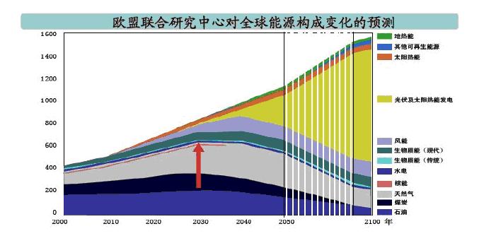 據世界能源組織(IEA)、歐洲聯合研究中心、歐洲光伏工業協會預測,2020年世界光伏發電將占總電力的1%,到2040年光伏發電將占全球發電量的20%,按此推算未來數十年,全球光伏產業的增長率將高達25%-30%。中長期光伏發電占能源的比重見圖10。