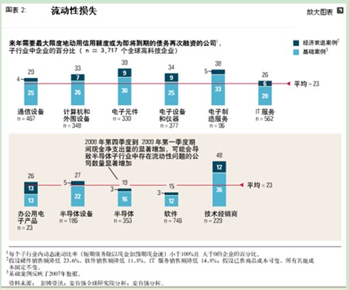 我們預(yù)測(cè),有 1/4 的高科技企業(yè)來(lái)年將不得不最大限度地動(dòng)用信貸額度,或進(jìn)行債務(wù)再融資。在元件制造、分銷(xiāo)和制造服務(wù)等某些子行業(yè)中,全球多達(dá)50% 的企業(yè)需要融資(圖表2 )。經(jīng)濟(jì)衰退已經(jīng)對(duì)亞洲的合同制造商們?cè)斐闪酥貏?chuàng):訂單流的可預(yù)測(cè)性降低,通過(guò)信貸額度進(jìn)行融資的成本正在變得令人望而卻步。分布在供應(yīng)鏈和銷(xiāo)售渠道中的這些壓力,會(huì)影響形形色色的高科技企業(yè)的經(jīng)營(yíng)范圍,影響生產(chǎn)、庫(kù)存和客戶關(guān)系。