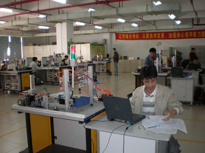 應廣大高技能人才的強烈要求和各用人單位的建議,我中心機電教室開發室開發了可編程程序控制系統設計師工種,目前已招生百余人。首批結業學員20人,已于2008年12月在廣東省輕工學院參加鑒定考試。在周圍環境和設備不熟練的情況下,合格率仍然高達90%。20人參加考試,其中18人獲得了廣東省職業技能鑒定指導中心頒發的“可編程程序控制系統設計師”職業資格證書(全國通用)。