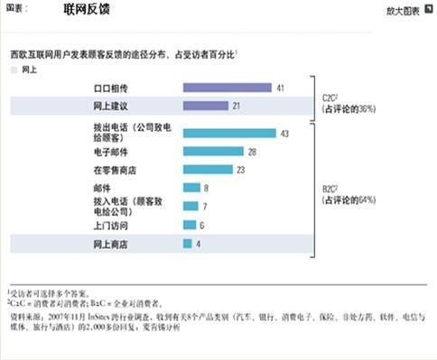 這些經(jīng)驗(yàn)中,有一部分來自參與式傳媒。我們的研究表明,在今天的西歐,有25%的互聯(lián)網(wǎng)用戶在網(wǎng)上發(fā)表對(duì)各種消費(fèi)產(chǎn)品的評(píng)論和看法(圖)。用戶原創(chuàng)型媒體網(wǎng)站的訪問者和參與者每年增加100%,而傳統(tǒng)網(wǎng)站的增長(zhǎng)率可能只有20%至30%。