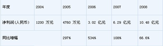 一:2005年、2006年、2007年,公司主營業務收入同比增幅每年都超過40%