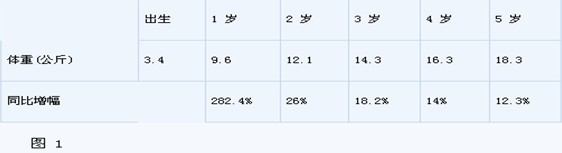 就以人類的生長為例,按照世界衛生組織的統計,一個男童從出生到5歲時,其體重的增長速度,隨著體重的不斷增加,呈逐年下降趨勢(見圖1)。